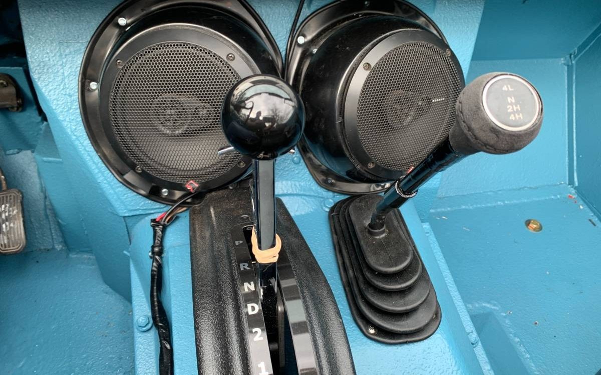 As mentioned before, there are limited photos of the interior in the ad. From this photo, you can tell that the floor and transmission tunnel have been coated with either a thick paint or bed liner-type material. The seller mentions the 727 transmission has been rebuilt but the “4wd shifter is stiff.” The stereo has been upgraded with Bluetooth and it also features new seats, gauges, heater, and wipers.