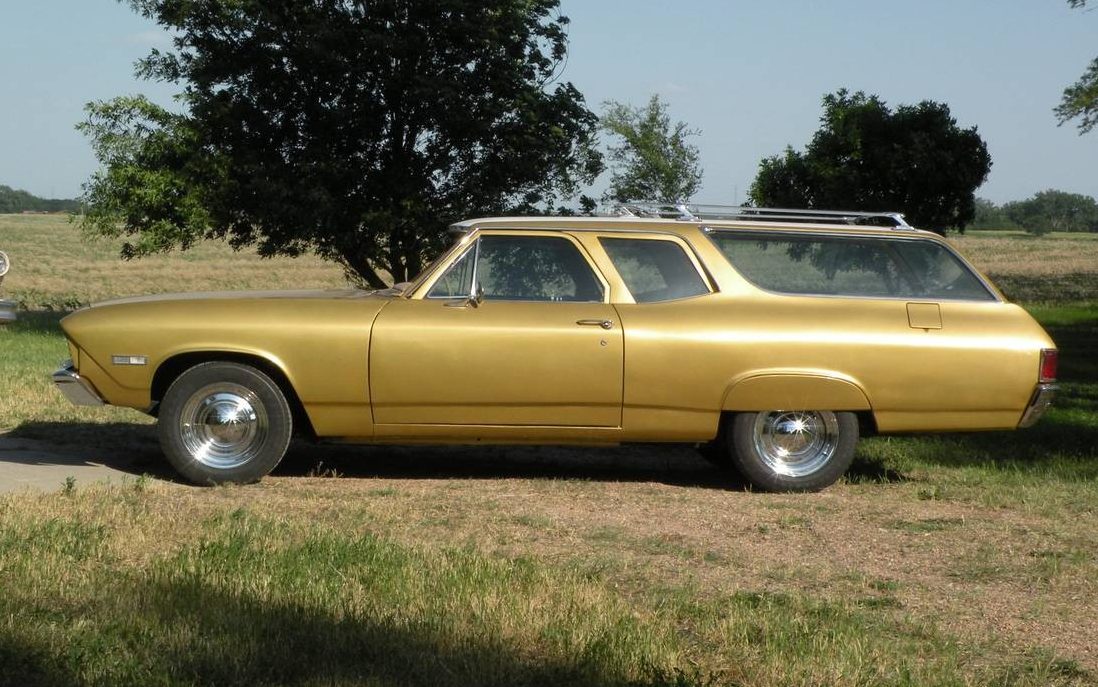 Hey Guys, this one certainly could have been done much better than this. We are in the process of converting my 1970 Nomad 4 door wagon into a 2 door hardtop wagon with 1969 Chevelle 2 door hardtop doors and it looks like it came from the factory as a 2 door Nomad wagon. This owner must not have spent the time that my buddy and I did studying what would fit and what doors would have the proper look after the rear doors were removed. I will send photos soon of mine and I think that your responses will be completely the opposite of these (fitting) comments about this ’68 model. The Chevelle Nomad was produced in a 4 door version from 1964 thru 1972, and my ’70 is an original Nomad. Ironically, it is the same gold as this ’68, but when finished will be Cortez Silver/Clearcoat. 550 horse,dual quad throttle body, port fuel injected LS3, Tremec 6 speed Magnum Trans. w/dbl. O.D., Moser Musclepak 3.73:1 12 Bolt Posi, Full DSE Level III adjustable Coil-Over suspension, 4-wheel Wilwood Discs, Vintage Air, Med. Dark Red Leather interior, power windows, etc., etc. – I will post photos soon for your opinions as to the balance of the custom doors installation, etc. Rear wheelwells are radiused to approximate a match to the fronts. 18″x10″ fronts, 18″x12″ rears Forgelines w/285/40 ZR18 front and 335/35 ZR18 rear blackwall Michelin Pilot Sports; And, much more, because I’m single and I don’t have to ask anyone how to spend my money. LOL. Looking forward to posting photos soon and to get your valued opinions. Thanks, GAR