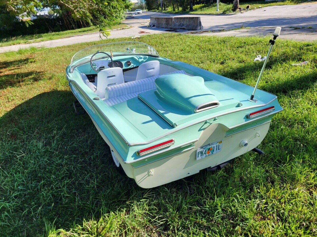 The 1960s were high-times for custom car culture, from the hot rods being created out of hulks in backyards to the Jetsons-era design language on display at every major auto show. The envelop was being pushed in every way possible, and so it should come as no surprise that the boating sector saw the same kind of experimentation. This type of boat, with its manageable proportions, racy looks, and cheerful paint scheme, is among my favorite kind of pleasure craft from this era; however, you can’t actually go boating in this one as it’s only capable of land-based movement.