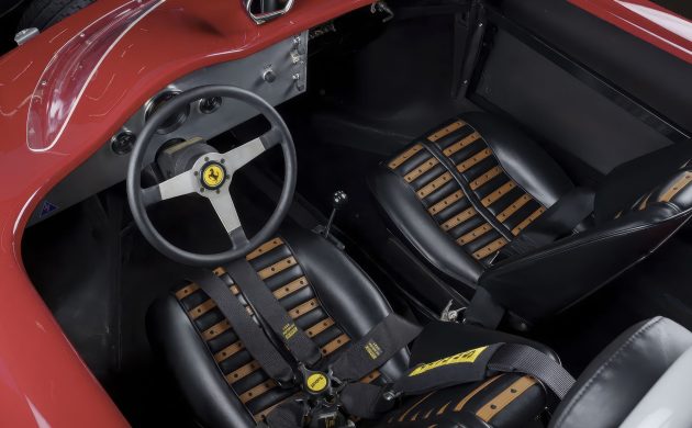 Despite not copying a particular Ferrari, the custom body evokes Ferrari design and spirit from most angles. The elongated wheelbase of the 2+2 comes through in this open rendition somewhat awkwardly, and I’d love to see a computerized short wheelbase rendering. The original wore a Dino badge and not the prancing horse, but most collectors now consider the Dino a “real” Ferrari, so I can excuse slapping Ferrari badges on this one-off’s shapely body. Also in this day when sellers fail simple IQ tests like fitting the entire vehicle in the frame or remembering an engine picture, take a moment to admire the seller’s excellent photography on BringATrailer.