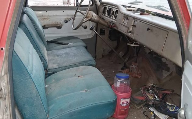 Later bucket seats outboard and what might be a custom-upholstered center seat fill an otherwise stock-looking cab. People weren’t buying one-ton pickups in the ’60s without good reason, and while the seller-claimed 183 inch wheelbase isn’t listed in the 1965 Chevrolet truck guide at GM Heritage, this rig may have begun life as a stake bed farm truck or something similar.