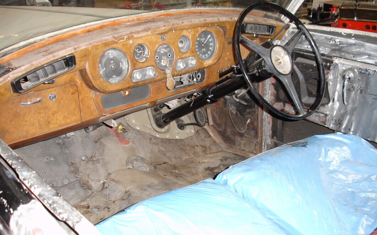 The right-hand drive interior is absolutely a work in progress. There is a walnut dash, replete with a full set of gauges in place, and red leather-covered seats too, but there is still much to be accomplished. The convertible top frame has been completed and is in place – the seller claims, “it opens and closes quite easily“. Back to those seats, Connolly hides or not, they’ll need attention but that’s a small matter compared to the entire scope of the remaining work yet to be performed.