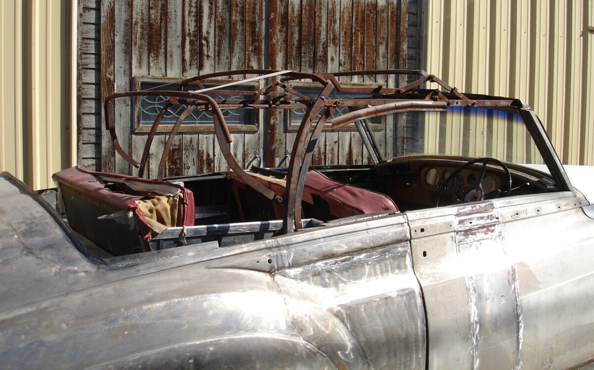 Now, here’s an interesting item that I learned, according to the seller, “Rolls Royce had their convertibles made by coachbuilders in the UK when these cars were new. Places like Mulliner and Park Ward took new unfinished sedans off the line and welded the front of the rear door onto the front doors to lengthen them. They obviously removed the roof, made a folding top frame, and had to rework the rear quarter panels to make it all come out”. This example, however, is not a factory car, it’s what’s known as a “cut car” or a convertible that was not built by a coachbuilder, but in this case a California shop. The seller further states that it will need an “experienced body man” to finish. The basics have been performed but there is a lot of finishing that will still need to occur.