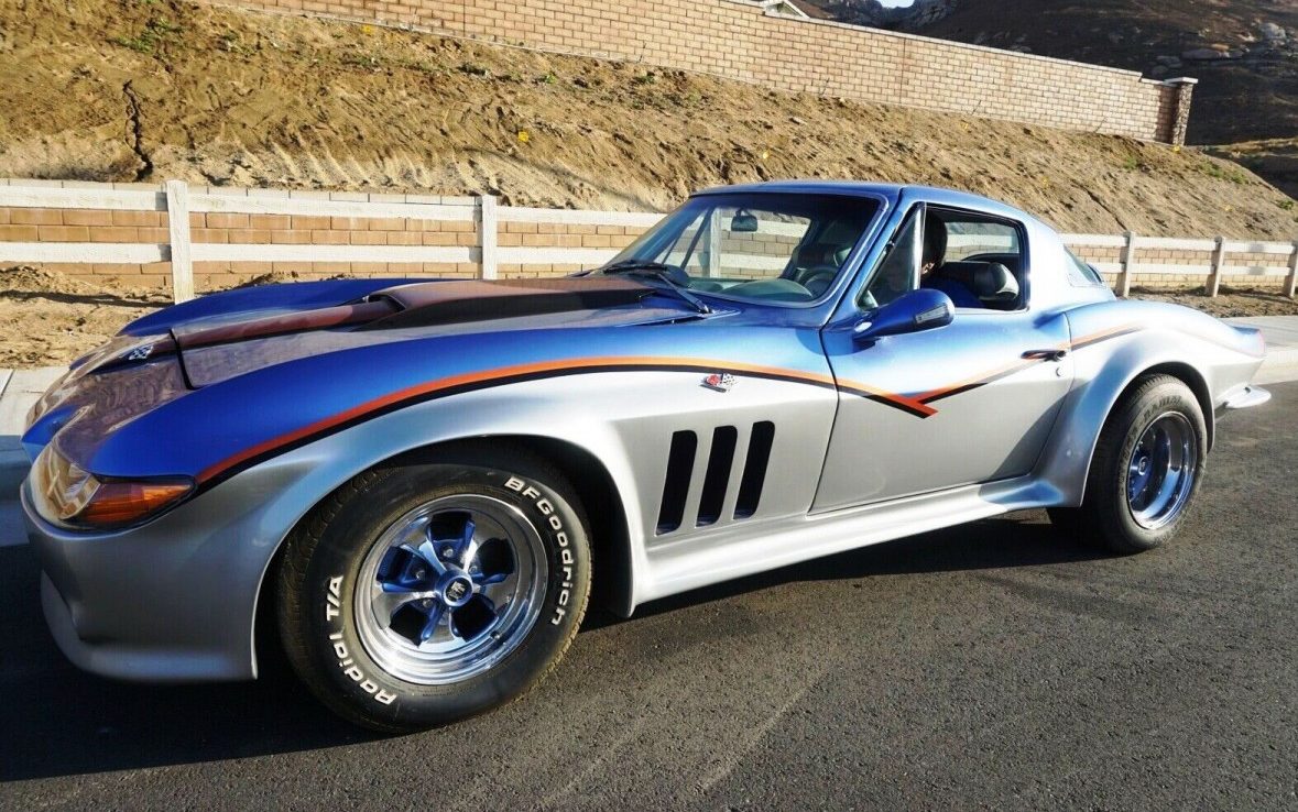 With a widebody kit and flashy paint, this extreme 1965 Chevrolet Corvette custom in San Bernardino, California may not be everyone’s cup of tea, but it’s recently had everything “redone or restored” before going up for sale. The elderly owner’s son who authored the listing says it runs great! The ’70s style custom comes to market here on eBay where $40,000 seals the deal via Buy It Now, or use Make Offer to submit an alternate number. Custom cars tend to polarize potential buyers, with purists lamenting any change from factory perfection, and others viewing them as a creative extension of the original design. I’m drawing a blank on the origin of those headlights, but they beat the bug-eyed C2 kits for sure. I might prefer a more recognizable nose, but the design is certainly bold. With little air feeding the radiator through the modified front fascia, let’s hope it draws more ventilation from below.