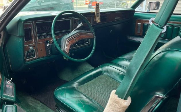 The uniqueness outside doesn’t stop with the body, as the wheel covers have also received a treatment that I’m speculating probably wasn’t cheap to perform. The steel has been turned candy green, which closely matches the other exterior trim, with some additional artwork added. Those extra-wide whitewall tires were also somewhat popular during this period, and they look right at home here. No photo is provided of the engine, but there’s good news from under the hood, as this one’s equipped with the optional 460 V8, which was the largest powerplant available here in 1977.