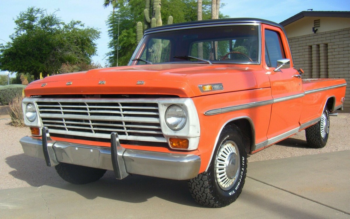 Your eyes aren’t deceiving you and no, this isn’t another one of my oddball Photoshop exercises for fantasy vehicles that were never produced. This 1969 Ford F-100 Explorer pickup really does have a custom low box/bed for some reason. The seller has it listed here on eBay in beautiful Scottsdale, Arizona and the current bid price is $3,550 but the reserve isn’t met.