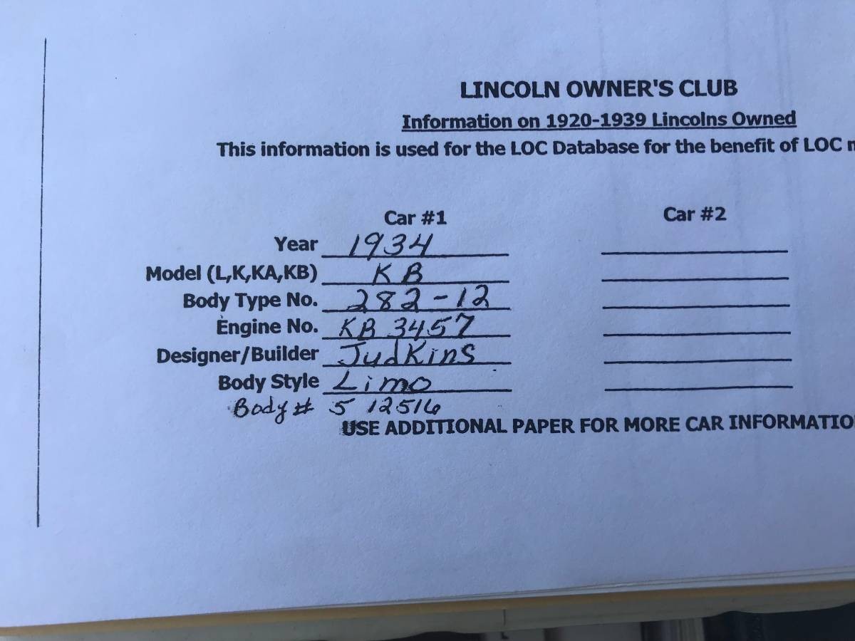 The Lincolns of the ’30’s were the best made and smoothest riding cars of their era. (Smoother riding than most modern cars.) Overall quality was superior to a Duesenberg or Rolls-Royce. Modifications to the car would be disgraceful. The K V12 is a very complex machine, it’s engine is nothing like a Ford V-8 and a rebuild should not be considered without contacting a real Lincoln expert. In many ways the engine is a mechanic’s delight – but you better know what you’re doing, and if you have to pull the aluminum heads you’re in for one of life’s great challenges. I don’t have a Lincoln book readily available to consult, but it looks like a Judkins Three Window Berline, as opposed to a limousine. All Judkins models rode on the the long 145 inch wheelbase, and the pictures indicate a completely original, correct car. A rear fender won’t be tough to find, and be very grateful that the car has a luggage rack and the all the correct covers for the sidemounts – very hard to find. As for the front fenders, I suspect that someone decided to repaint them, primed them, then left them to rust. This is a magnificent car that deserves to be lovingly caretakered.