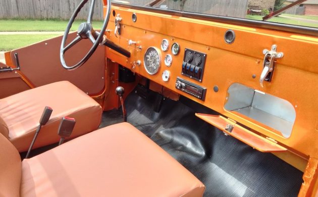 The bright orange paint gives it an eye-catching street rod vibe, further emphasizing that this is not meant to be a rock-crawling trail rig. However, the seller does note that a proper alignment and radial tires would be smart upgrades for higher-speed cruising, and the parking brake still needs adjustment. Those finishing touches should be straightforward for the next owner to handle.