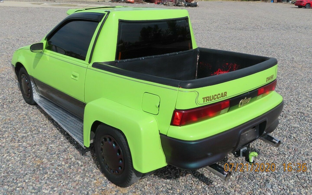 Nice find, Scotty! I’ve seen a similar low-budget “pickup” made from a Hyundai coupe in my area, but that one simply looked like the result of 10 minutes with a Sawzall after a 12-pack of Old Milwaukee. This Lime Green masterpiece has taken some planning and skill! Some people go through their entire lives asking “Why?” and we need more free-wheelers who simply ask “Why not?” I once saw a Pro-Street style VW Rabbit Pickup still powered by the original engine and front wheels. Why not? Thanks for bringing this unique creation to our attention!
