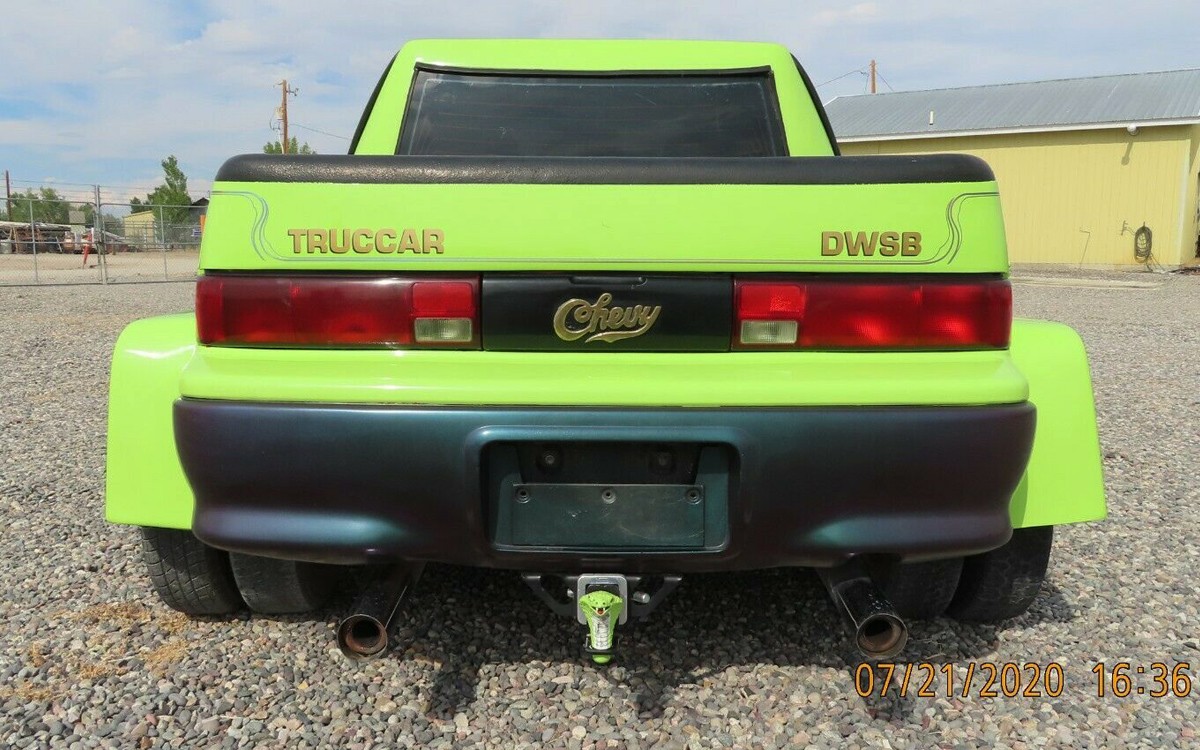 There it is in all its glory, pretty cool. Does the tailgate work? Is there a tailgate? We don’t know and this is the only photo of the inside of the tiny bed, believe it or not. As always, there are not enough photos and this custom build deserves to be shown in all its glory. Hey, I think it’s glorious! Dually, indeed, very cool. Although, the skins could use some help. Could you imagine pulling this into a tire store? This car is already a social media star so be prepared to talk about it every single time you drive it on public streets.