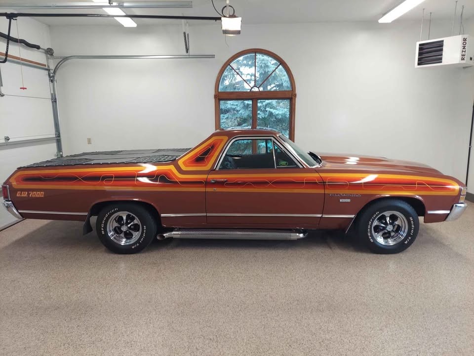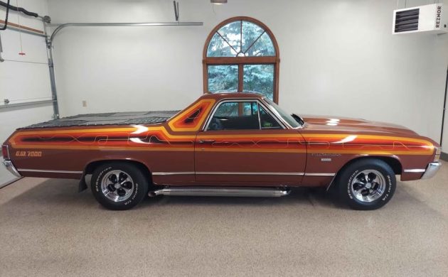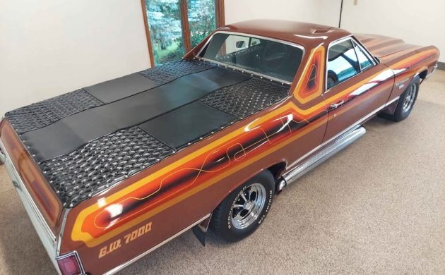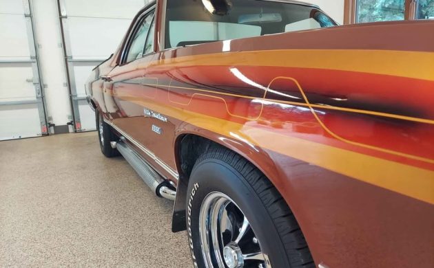 Chevrolet introduced its Third Generation El Camino range for the 1968 model year, with 1971 buyers benefiting from a second cosmetic update that kept the company’s latest offering looking fresh and clean. The first owner ordered our feature El Camino that year, electing to cloak its exterior in a factory shade called Burnt Orange. It didn’t remain stock for long, with renowned automotive artist Jon Kosmoski from House of Kolor, located in Warrensville, Ohio, adding a set of custom graphics that help this classic to stand out. What makes this Chevy impressive is that the custom touches remain as applied, with the El Camino never undergoing any form of restoration. It has been through the hands of two subsequent owners who have protected it from all that Mother Nature might throw at it, with the vehicle not seeing rain since 1977. The paint still shines richly, the custom work looks crisp, and the side exhaust and Keystone wheels add the perfect finishing touch to this rust-free classic. The seller notes minor clearcoat cracking and slight deterioration of the hood graphics, although these small problems may prove repairable.