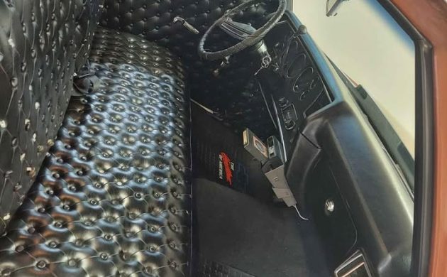 That interior needs a fake woodgrain dash (out of a Monte Carlo?) and burnt-orange shag carpeting to really make the button-tufted wet look vinyl pop.