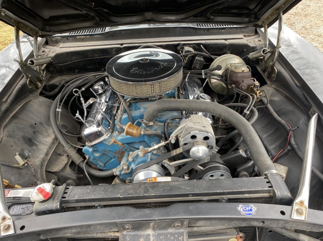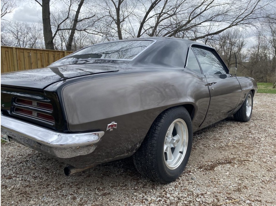 Nearly 88,000 Firebirds were built for 1969, which had a production run of more than 15 months as the new 1970 models were delayed in getting ready. Most of them (some 75,000) were “base” 2-door coupes like this one. The seller’s car looks to be wearing a custom two-tone paint job, black over bronze/green. It looks good from 20 feet, but some imperfections can be found the closer you look, particularly on the hood and snout. There is also some chipping in places like around the windows. But none of it looks like it’s in any immediate danger of becoming surface rust.