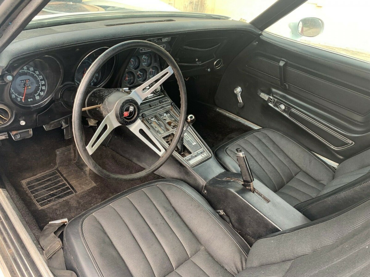 The interior of this Corvette looks to be fairly well kept. There is some rust on the turn signal stalk and some chipping on the column. Other than that, the seats look almost new and the dash seems to be in fair shape. The carpet could use some work though. A good cleaning may be all that is needed.
