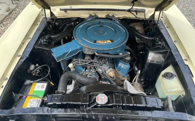 Why does it seem that this pony car is so right? Maybe because the body dimensions, though bigger that the original Mustang’s, still have lovely proportion. Maybe because it has the C-code 289-CID engine. Maybe it’s the easy-shifting automatic transmission. Or the fact that it’s a factory AC car and that its power accessories include power steering. Heck, have you driven a manual-steering equipped car lately? It’s a lot harder than you might remember, if you’re old enough even to do that, and not a great deal of fun. I speak from experience. This Mustang is not a muscle car, but who cares? It’s got enough to make it a worthy driver. Disc brakes on the front make it a car that will stop more-or-less on command, too.