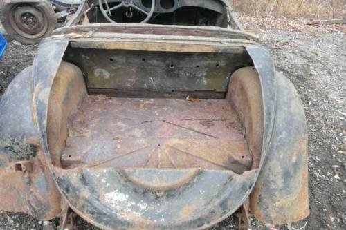 There’s not much of an interior here, but the sale includes floor pans, other patch panels, and some parts to assist the restoration. Still, the buyer will have his or her hands full. The 23 horsepower 50 cid four cylinder is AWOL, and I’m pretty sure this is one car that should not have a Chevy 350 engine dropped into it, though I’m sure that would be possible with an adequate disregard for history and some ingenuity.