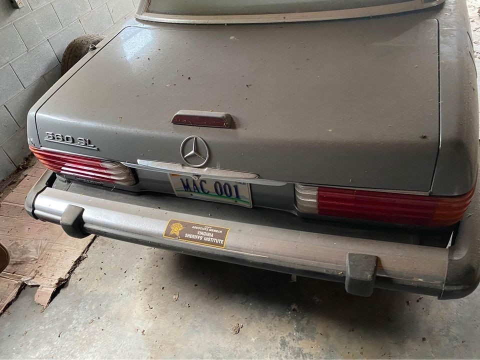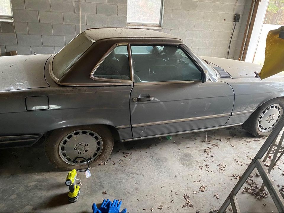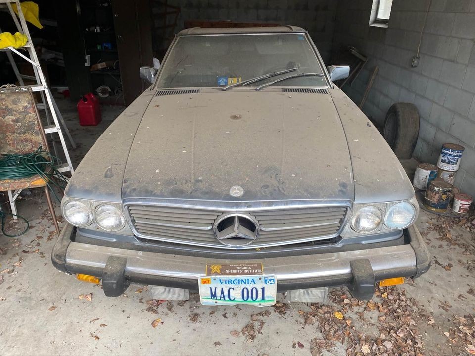 The seller doesn’t provide much information, likely because he has none. That’s the trouble with buying from an estate as on many occasions, the heirs don’t know much about what they’re selling. In addition, they also lack the mean (or the desire) to perform any sort of investigative work to assess what the car will need to run again. This 560SL looks to have gone into the garage in reasonable condition, with the gray bodywork in good shape and the soft top looking nearly new. The stock Mercedes wheels don’t appear to be caked in brake dust, and really, aside from the layer of dust on top, the cosmetics look pretty good. You also don’t see these roadsters in steel gray all that often.