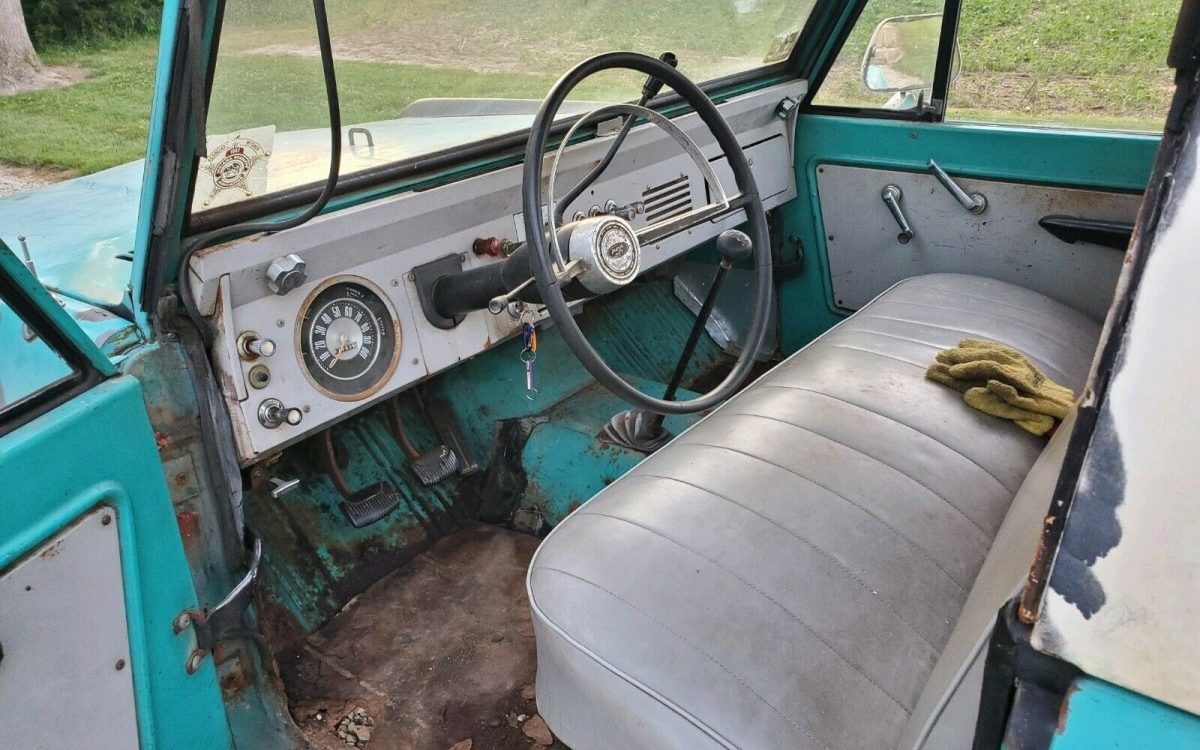 Overall, the interior seems very original. The seat cover is in great condition for being used on a farm almost daily. I bet the driver is hopping in and out of it all the time. The seller does say that it has “rust in the normal bronco spots like the floors, rockers, and front of the bed.” However, they say the frame is solid and the actual body is not rusted out.