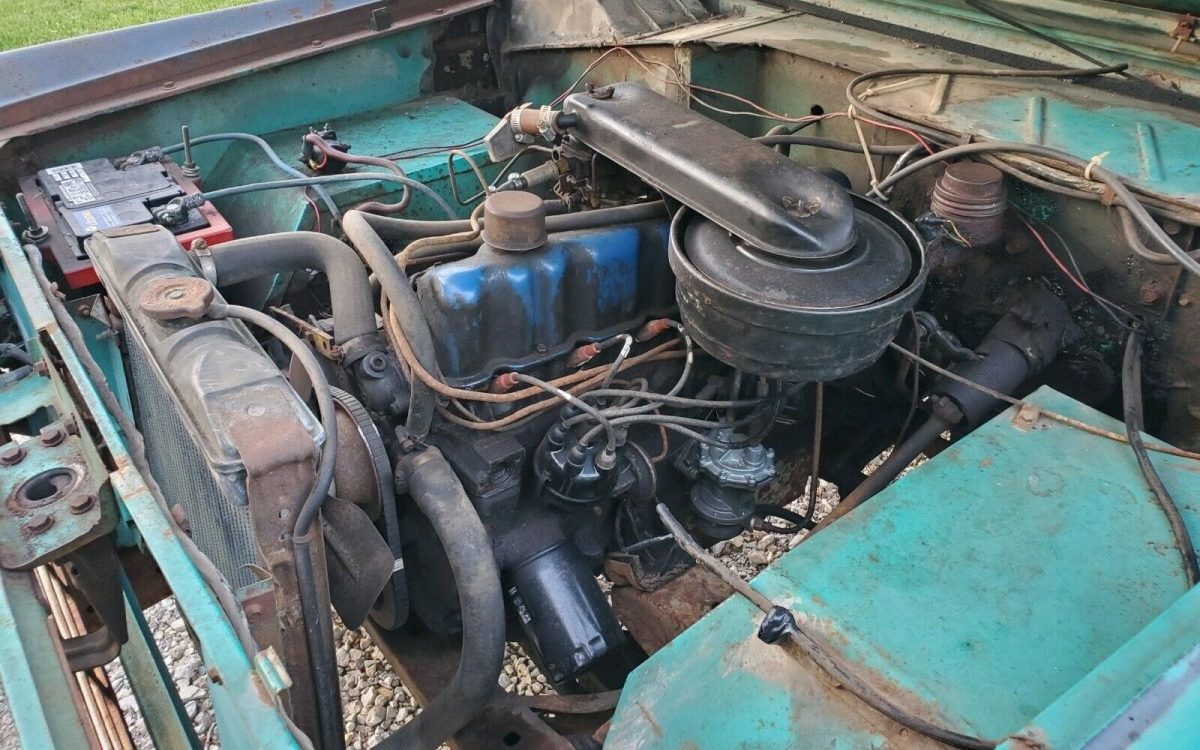 The engine is a straight-six and looks like it has had some routine maintenance done. The ad says it runs well and is mechanically sound. You can see what appears to be a newer fuel pump, distributor and oil filter. Overall, this seems like a decent candidate for a restoration or driver. What do you think?