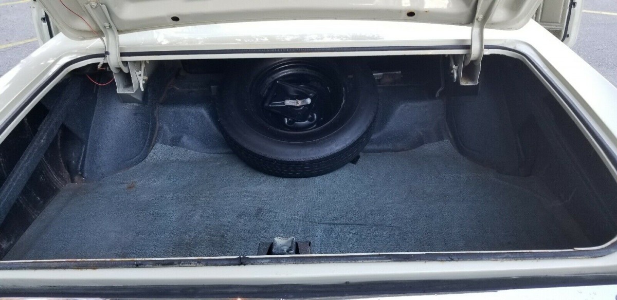 Inside the car, there is little to find fault with. Other than some discoloration on the door armrests and part of one door panel, the original material has held up well. The front seat appears to have a small stain in it that should easily come out. The dash pad and headliner are both tip top. All the gauges work well, and both the heater and factory air conditioning are good enough to run you out of the car (we’re told).