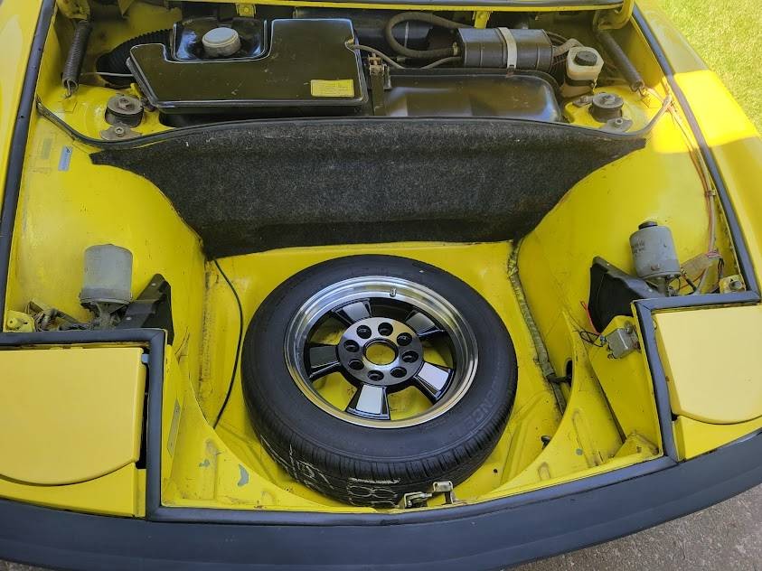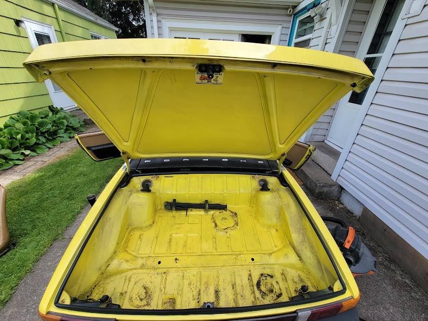 No complaints about this interior – it’s in great condition. In cash you’re wondering, there’s plenty of room in here for tall drivers, and if you need more, pop the targa top! Just kidding – but unless you’re LeBron James, you can probably fit under the weather protection. I don’t care for the after market steering wheel, but I could live with it. Both trunks are almost clean enough for Cars ‘N Coffee. That set of extra gauges includes a clock, volt meter, and oil temperature. The seller notes that the odometer has quit, so the total mileage is unknown.
