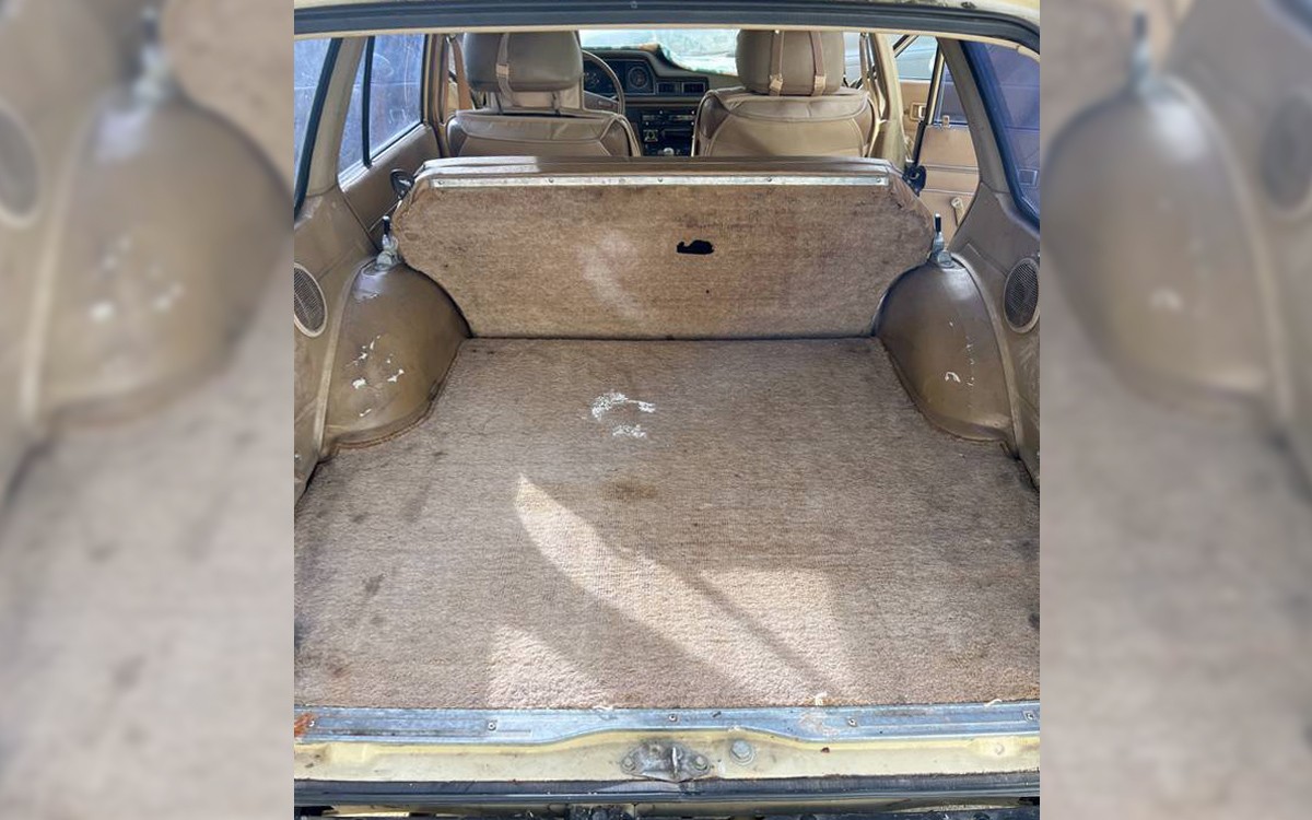 Vinyl seats were the only available seating surface in the Deluxe wagon, and I’m guessing the front seats are in need of help, as we don’t get to see them. The same with the top of the dash, but I only see one small crack in it in another photo. There’s that standard equipment five-speed manual though, that makes up for a lot of other sins.