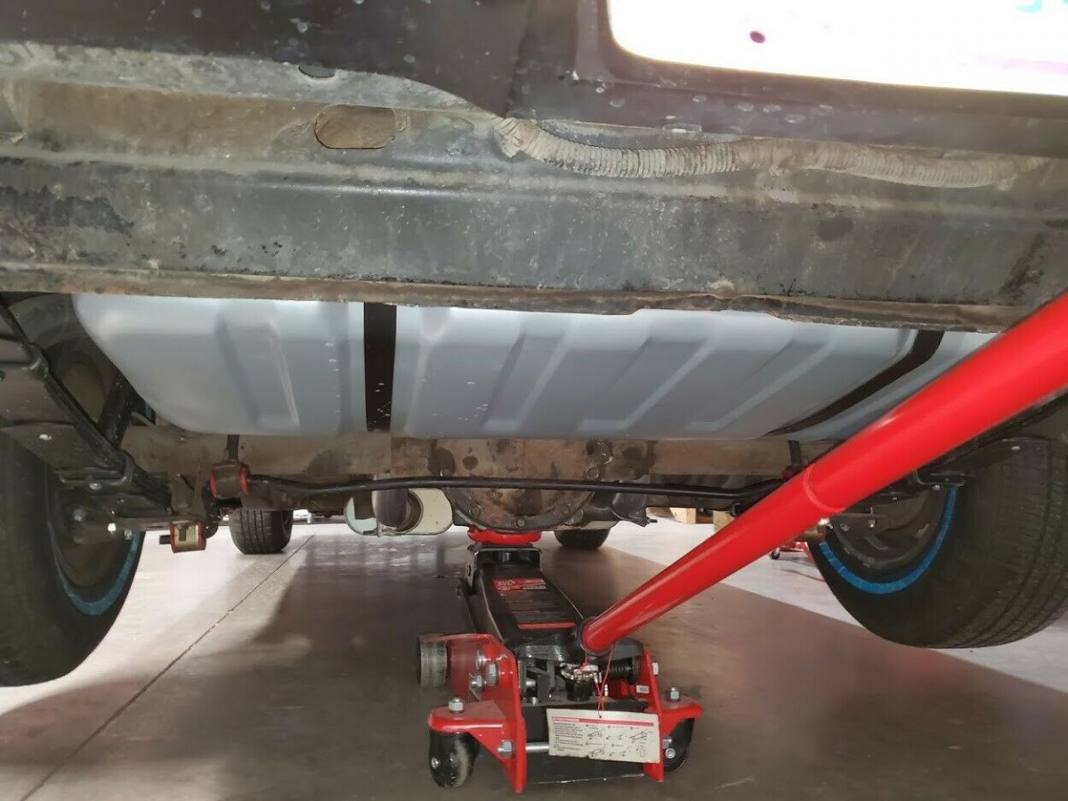 In the rear, in addition to a new gas tank and hangers, the entire rear suspension was replaced. Brand new leaf springs were installed with new bushings, u-bolts, and shackles. As in the front, new poly anti-roll bar bushings and shocks were installed too. The seller states that the car handles and drives like new, and I can believe it.