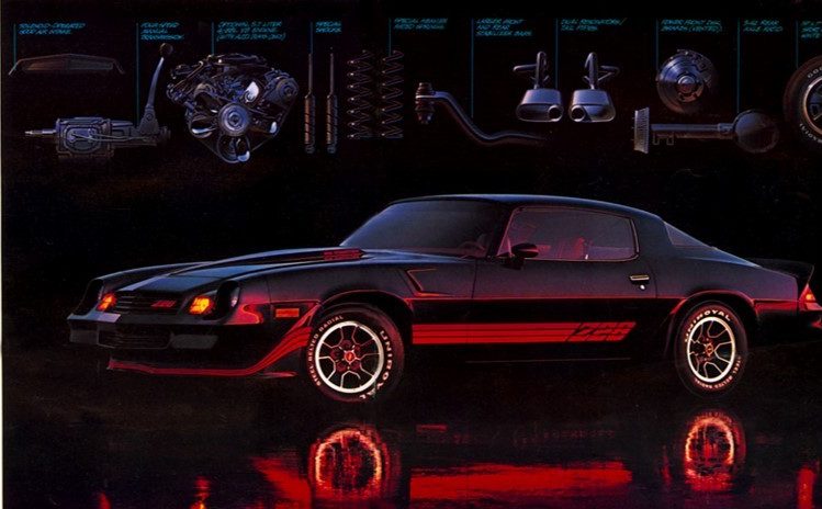 You can see what the factory stripes should look like (although the color on the replacement ones on this car was available as a factory choice) on this clip from a 1981 Z28 brochure. See, I told you the raised white letter tires look nice!