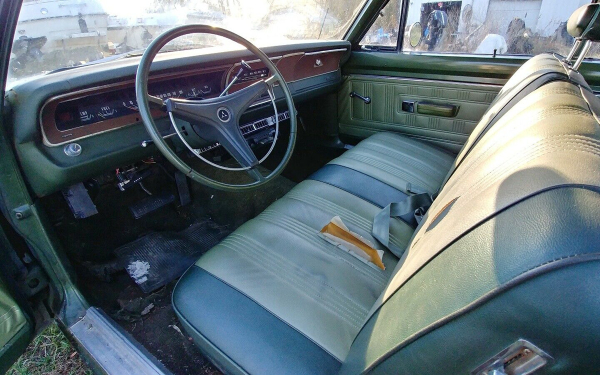 The interior is also green, as you probably expected, and it isn’t perfect but it looks better than I expected it to look. This is a fourth-generation Dart and they were given a refresh in 1970. They say that the underside has no horrible areas of rotting metal, which I’m not sure gives the utmost confidence to a prospective buyer, or maybe it does, given the Dart’s propensity to rust underneath.