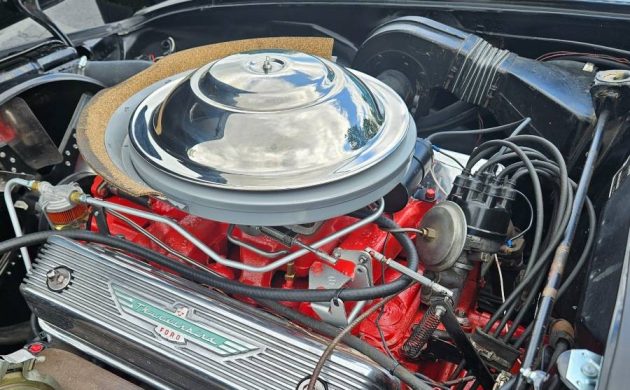 It’s a pleasant change of pace to see an ad that describes a car in good detail. As the seller says, it ain’t perfect, but it’s nice, drives well, and can be enjoyed with some cosmetic improvements made down the road if the new owner so chooses. The previous owner had the car repainted in its original Code A Raven Black. It’s described as “appearing good but not show-quality,” and there’s a paint crack on the Bird’s front beak below the crossed flags emblem. The car’s had no known accident damage but has had some rust repairs to the inner rocker panels, floor pan patches, and repairs to the trunk drops. The chrome, trim, glass, and lenses look good and it comes with both tops, which is a plus. The optional convertible top is tan (’55 soft tops only came in black or white) and is in very good condition. There are photos of the matching Raven Black removable hardtop and the seller says it needs some TLC. All I could spot were some headliner defects and rips. The tires are described as older (and need wider whitewalls to be period correct) and come with the full wheel covers. A set of wire wheel covers are also included in the sale.
