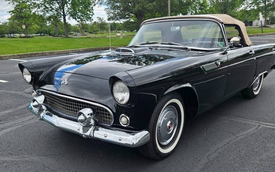 The engine’s an interesting story because ’55 T-Birds were available with only one engine: the 292-cubic-inch Y-Block V-8 that generated 193 horsepower. The seller claims the ‘Bird’s larger 312-cubic-inch V8 was installed at the factory. Perhaps this Thunderbird was built towards the end of the ’55 model year run and the 312, an optional engine available on the ’56 T-Bird, was put in at the factory by request. Nothing is mentioned about documentation on this possible anomaly. Mileage is listed at 87,738 and the seller says the T-Bird “starts right up, runs well, and there are no known mechanical issues.” In the rebuilt/replaced department, the carburetor has been rebuilt, the solenoid and wiring for the transmission’s overdrive unit have been recently replaced, an electric fuel pump has been added, the timing and dwell have been recently adjusted, and the ‘Bird’s battery is brand new. This nice-looking Black ‘Bird is located in Lansdale, Pennsylvania and is listed for sale here on craigslist. The seller has a $40,000 asking price on it but says it’s negotiable. Ya know, there’s a reason why so many Raven Black T-Birds were featured in print ads and other marketing pieces back in 1955. It looked classy and sporty back then and still does 70 years later!