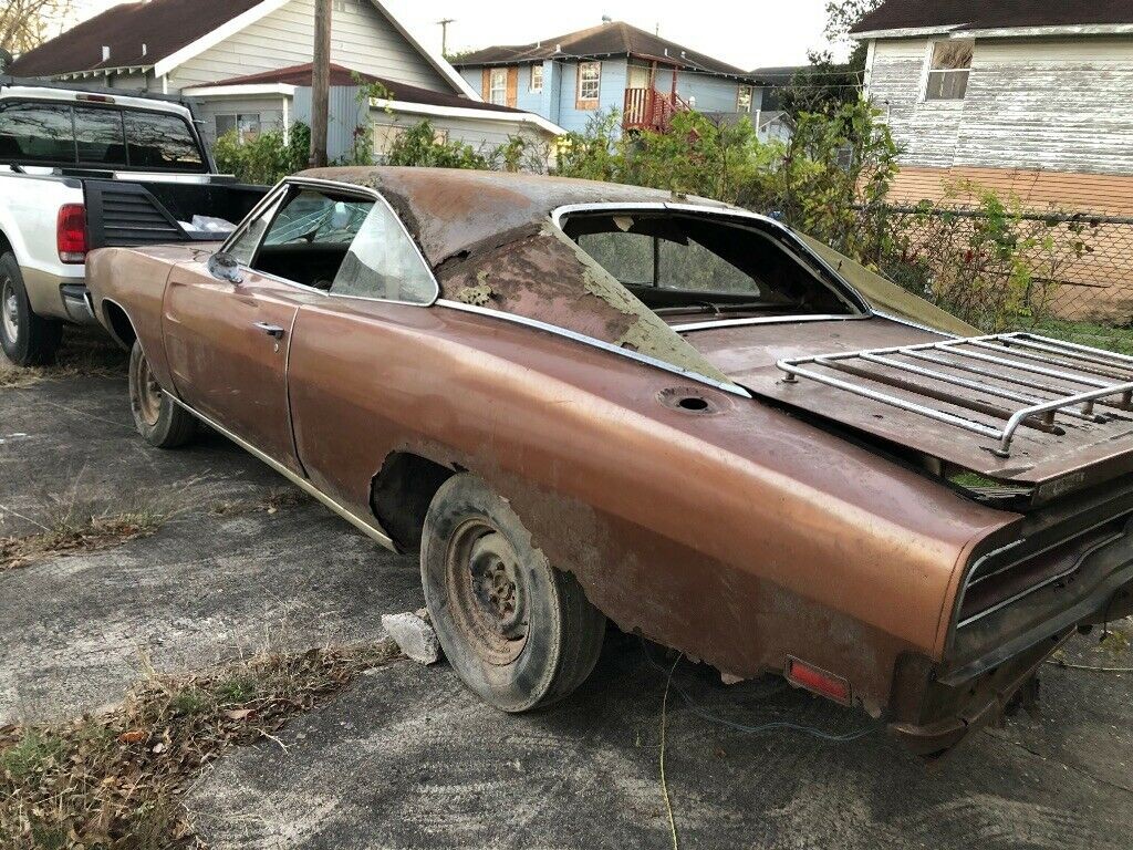Is this a diamond in the rough or is it too far gone to get it back on the road? This 1969 Dodge Charger is listed here on eBay with a bid of $2,800 with 4 days remaining on the auction. Six bidders think this Charger, located in Houston, Texas, is worth saving or at least has some valuable parts. The seller states the frame rails are good but the quarters appear to have substantial rust corrosion. This is the first 1969 Charger I have seen with a luggage rack mounted on the rear trunk lid. The car does not have an engine or transmission but the console indicates that it was originally built with an automatic transmission. The interior shows not to be in better shape than the exterior but appears to be originally tan or beige that matched the vinyl top.