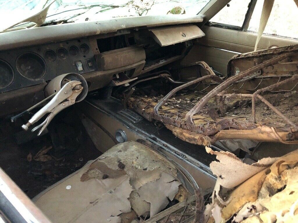 This is definitely a project and will need not only a number of body panels but also structural parts for the trunk and interior. If you restored this car, would you keep it the same color? Do you like the tan vinyl top that matches the interior? Would you opt for the 440 cubic inch engine that the seller has?