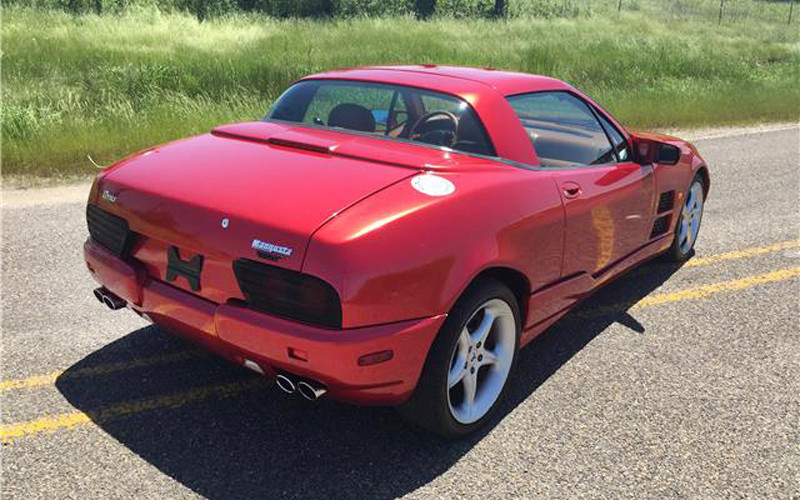 Qvale (ka-Voll-e) was a short-lived Italian car company that made the Mangusta (man-Guust-uh) (kidding, you knew that one) for model years 2000 through 2002. Only 284 cars were made before hard times hit and the company was sold to MG Rover Group. The seller says that this car could use a respray at some point but it’s perfectly usable the way it is, it’s just not up to the quality of what it should be.
