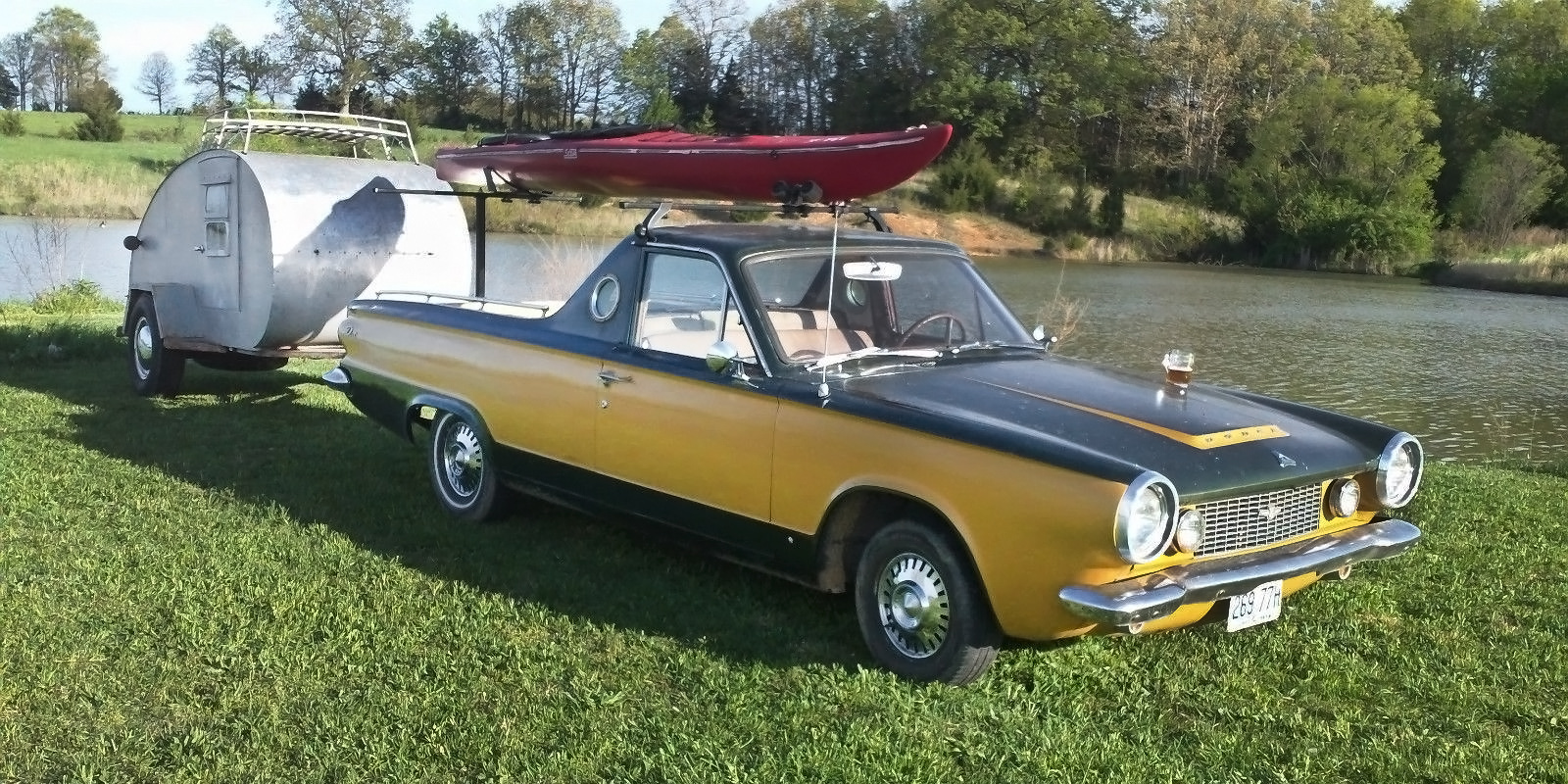 This makes me think Chrysler dropped the ball with this one. They could have built something to compete with the Ranchero and El Camino. This is cool because it is really unique. I think it would show better with a canoe on top instead of the kayak though. Just sayin
