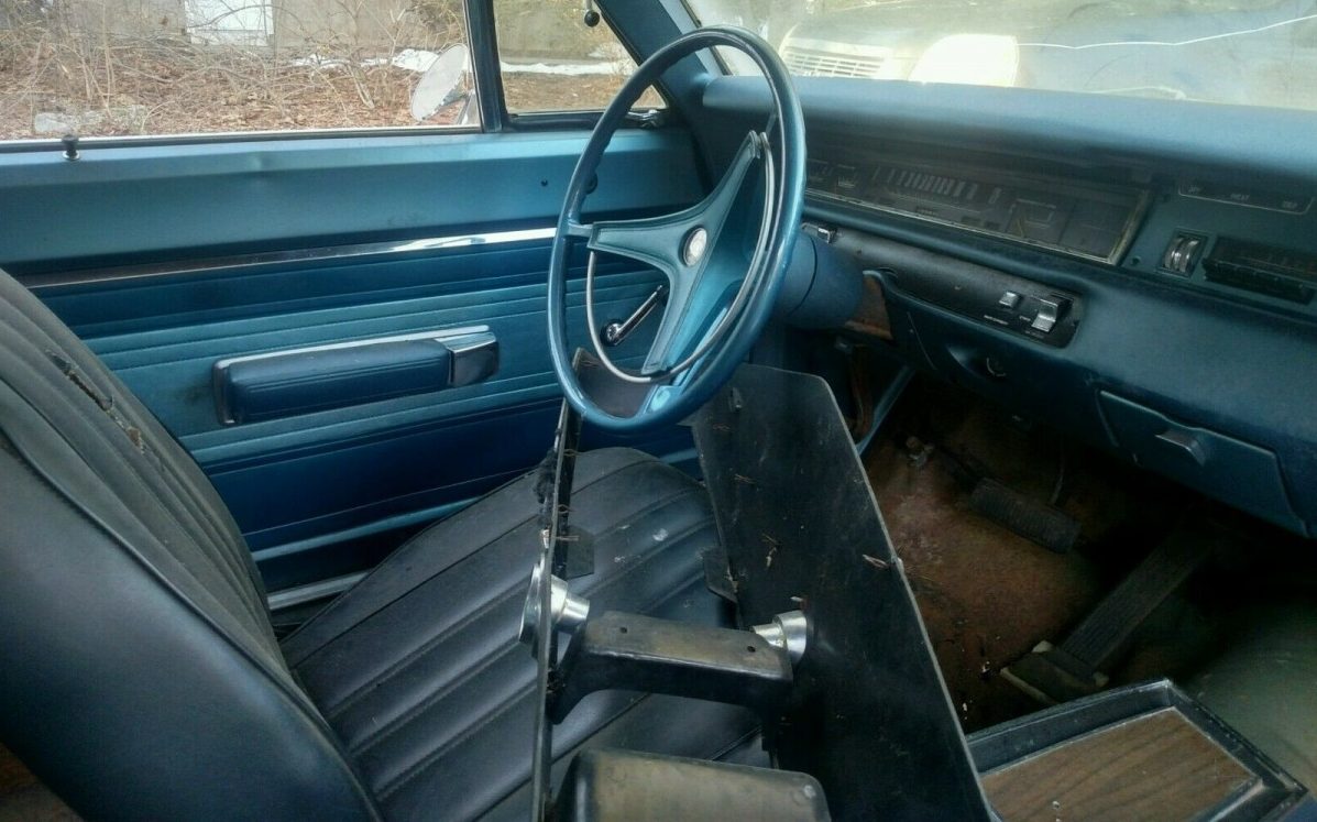 So an Ivy Green exterior and a blue interior, that’s less than an optimal combination. Well, a little trim tag decoding tells us that the exterior finish of this Plymouth was originally coded B7, Jamaica Blue Metallic – that explains the blue interior. The accompanying image isn’t very telling and the listing description is of no help. It’s a bucket seat, center console environment but its true condition is not revealed and the “whatever it is” (an upside-down console frame?) sitting on the front seats only makes full visual disclosure more difficult.