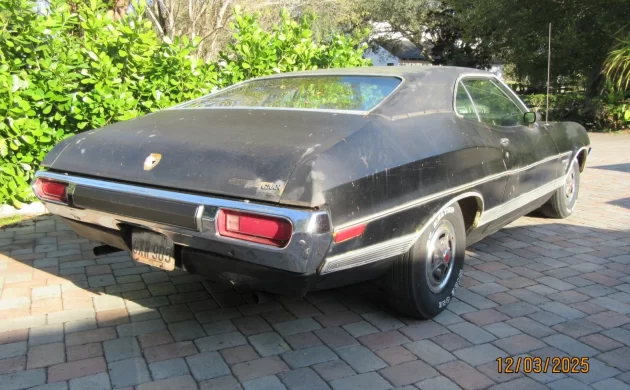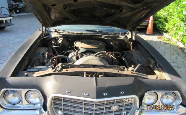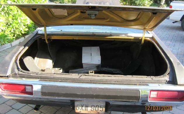 On the other hand, the body is missing the gaping holes found in so many early 1970s Fords; it has “just a couple rust spots and that’s it.” The frame is good (but there are no pictures in the ad), the wheelwells are good, the floors are good, and the trunk is good. This is a minor point, but the wheelcovers don’t match any of the 1972 Torino options in the sales material. Are they aftermarket? If they look familiar, please give us something to go on in the comments.