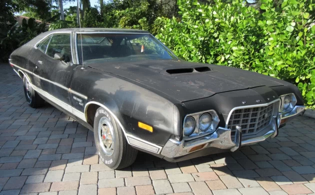 One of the fascinating “what-ifs” of American automotive styling is what direction the all-new-for-1972 Torino would had taken if five-mile-per-hour bumper regulations not taken effect in 1973. With its bold grille and intricate front bumper, the ’72 model was a bit of a one-off, and it’s certainly (in my opinion) the best of the big 1972-76 generation of Ford’s intermediate. The Gran Torino Sport, especially the SportsRoof (and that’s a mouthful to say at the same time) has become a fairly hot collector car, perhaps as a result of some movie car cachet. It played an important part in Clint Eastwood’s Gran Torino and was one of the baddies’ cars in Fast & Furious, the fourth installment of that increasingly outlandish film franchise. This ’72 model is, sad to say, likely to need a full restoration, but in the words of the seller, it has “one of the cleanest bodies” he’s seen in a long time. It’s currently on eBay in Pompano Beach, Florida, with an asking price of $12,900, but the seller is “ready to deal.”
