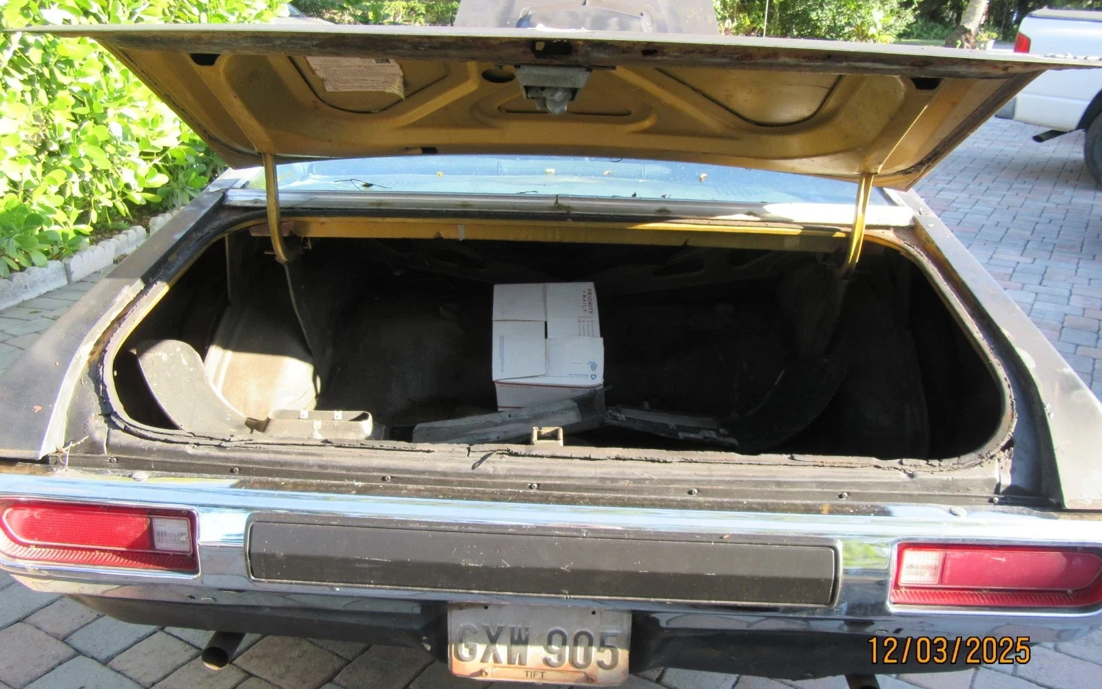 On the other hand, the body is missing the gaping holes found in so many early 1970s Fords; it has “just a couple rust spots and that’s it.” The frame is good (but there are no pictures in the ad), the wheelwells are good, the floors are good, and the trunk is good. This is a minor point, but the wheelcovers don’t match any of the 1972 Torino options in the sales material. Are they aftermarket? If they look familiar, please give us something to go on in the comments.