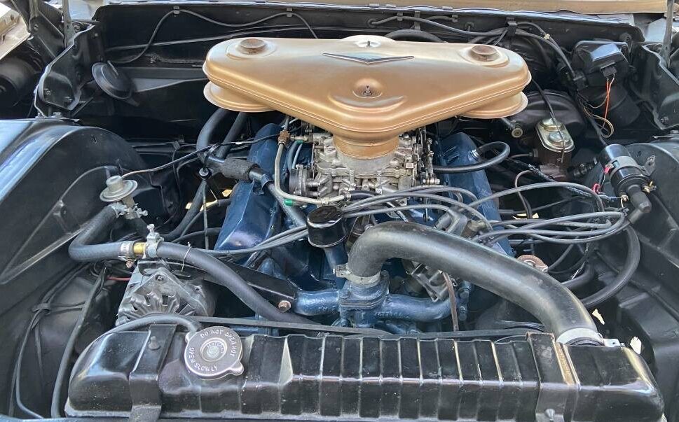 The big news is the 340 HP, 429 CI V8 engine which is lurking under that Montana-sized hood. But, there’s more to it than the standard Cadillac fare as the seller claims, “This High-Performance Cadillac was built as a concept of what could and should have been for 1964, just like the 1955 through 57 El Dorado with dual-quad carburetors and Bat Wing Air Cleaner“. Added is, “I freshened up the engine, which is original, a few months back with a cylinder honing, new standard sized Mahle performance rings, standard sized Clevite con rod bearings…Intake manifold, Carter/Cadillac AFB’s, and Batwing Air Cleaner are all Cadillac OEM”. Nothing is said about operational capability other than this DeVille has never left its owner stranded. Backing up the big 429 engine is a first-year Turbo-Hydramatic 400, three-speed automatic transmission.