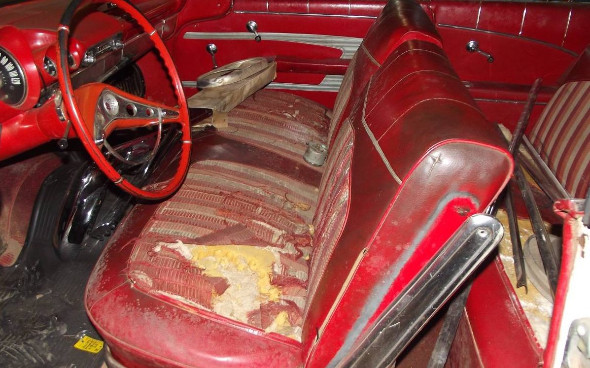 The interior is fair, the upholstery is worn out and the collection of detritus strewn about makes viewing difficult but the seat pattern is visible and it is another neat styling touch from the ’50s – one we certainly don’t witness today. There are some stainless trim pieces in the backseat, perhaps the missing components identified earlier? Cars of this era had rather spectacular dashboards and instrument panels and this second-year Impala is no exception. Chevrolet opted for a circular speedometer in 1959, as opposed to 1958’s horizontal read-out, and subjectively, I think it’s an improvement. The gauge cluster has a nice balance and it is just cool looking; this one appears to be pretty complete.
