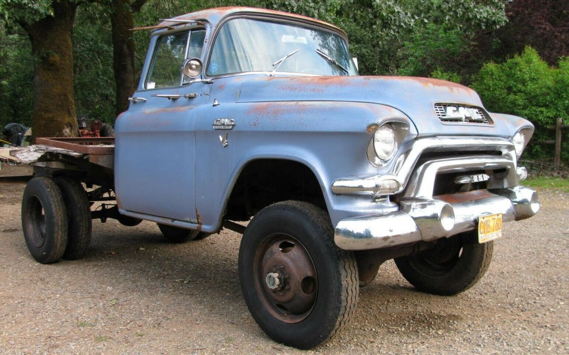 Frequent visitors to this site, probably already knew, comments 1 and 2 would be from the sites self proclaimed biggest truck buffs. This is indeed an unusual truck. I’m trying to figure out who would have used a truck like this. 4 wheel drive, almost unheard of in the mid 50’s, would indicate some kind of off road service truck. The clock may be original, but the tachometer isn’t, and I’ve never seen a “survey speedo”, I think it was just something someone had laying around, unless accuracy was important, for some reason. It appears to have a disconnected air compressor, and those hyrda-vac brakes gives me the heebie-jeebies. I had some scary rides in trucks with hydra-vac brakes, and a “chargicator”? I think this may have had some kind of auxiliary motor. I’ve never seen a NAPCO with an automatic, a “Truck” Hydramatic, no less. During this time, a GMC was not a Chevy with lockwashers, it was an entirely different truck. I think those front ends were thee most aggressive style ever. Again, even with the automatic, 40 mph will be about it, and a ride, 2nd to none, but it is a really neat unit. Great find.