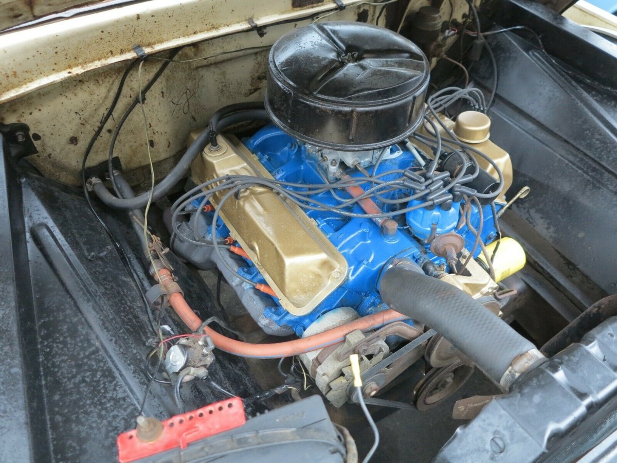 “Derelicting” is a trendy word, like patina, that’s just surface rust. “Preserving” rust doesn’t sound like a good idea to me, so as far as I’m concerned, this nice F100 should have a fresh paint job. Freshen up the bumpers and paint the inside of the bed body color, too. Too bad the bench seat wasn’t upholstered in blue and white, the black just looks out of place. Also, I’m pretty sure this pickup has vinyl/rubber on the cab floor and not carpeting. It’s a nice vintage F100 with a decent powerplant and a 4-speed in pretty good shape overall that seems to be complete and mostly original.