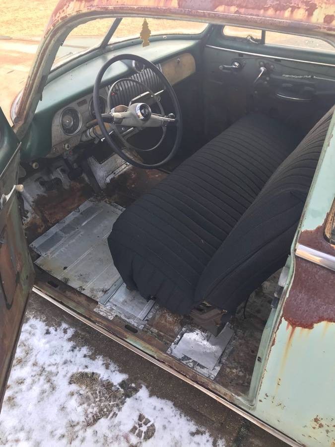 The seller tells us that it retains its stock drivetrain of 216-ci straight-six and 3-speed manual box, but has power disc front brakes, new fuel tank and lines, and has been converted from 6V to 12V electricals. It allegedly runs and drives, rolling on what looks to me like refreshed stock rims and new rubbers. We can see in the pictures that there has been at least some sheet metal work on the floors, some sort of cover on the front seat, and a newer tach strapped to the column, but otherwise, it would appear that this car is in as-found condition.