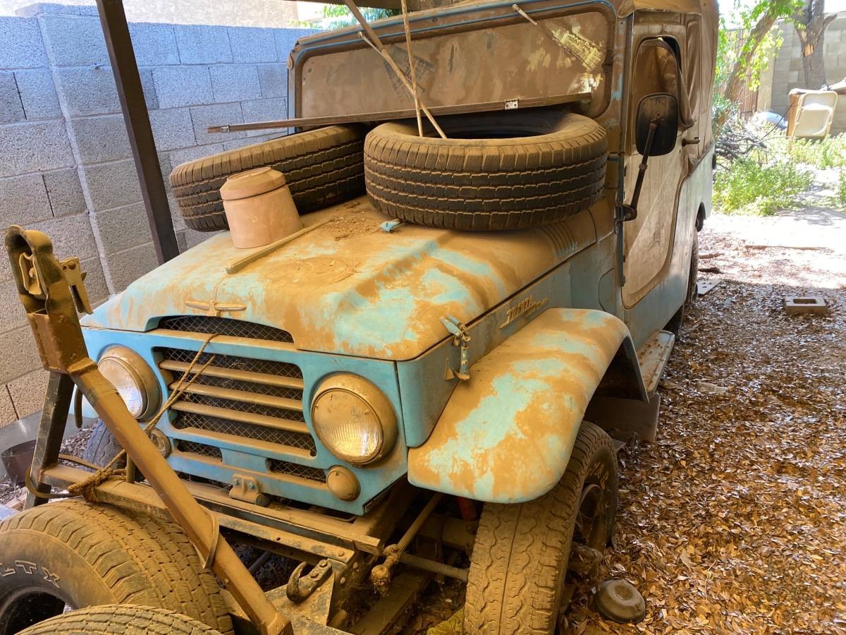 Production of the Land Cruiser began in 1951 and has been available in a variety of body styles including convertibles, hardtops, station wagons, and cab/chassis deliveries. This 1959 edition is an FJ25 which is a topless (with canvas snap-on) that is considered a “bush drive” car. This one may have 78,000 miles on it and has been sitting since 1992 where sand and dirt have pretty well covered it up.