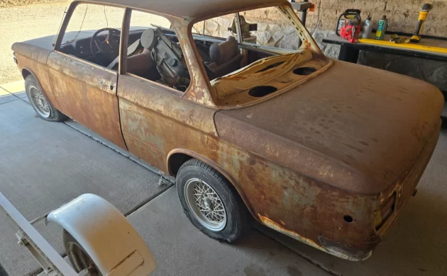 The car has been prepped, kind of, for restoration, with parts loosely strewn about. If I had to guess, the seller grabbed this 2002 as a discarded restoration project, or it was left in their shop by an owner who isn’t proceeding with the work. The listing says it comes with a large amount of parts but there’s no confirmation that you’ll find everything needed to put this 2002 back together. The body has been prepped for future paintwork, but there’s still some rust repair to address in the floorboard. The BMW rides on a set of classic BBS/Mahle wheels, which will hopefully remain in place once the bodywork and mechanical phases are complete.