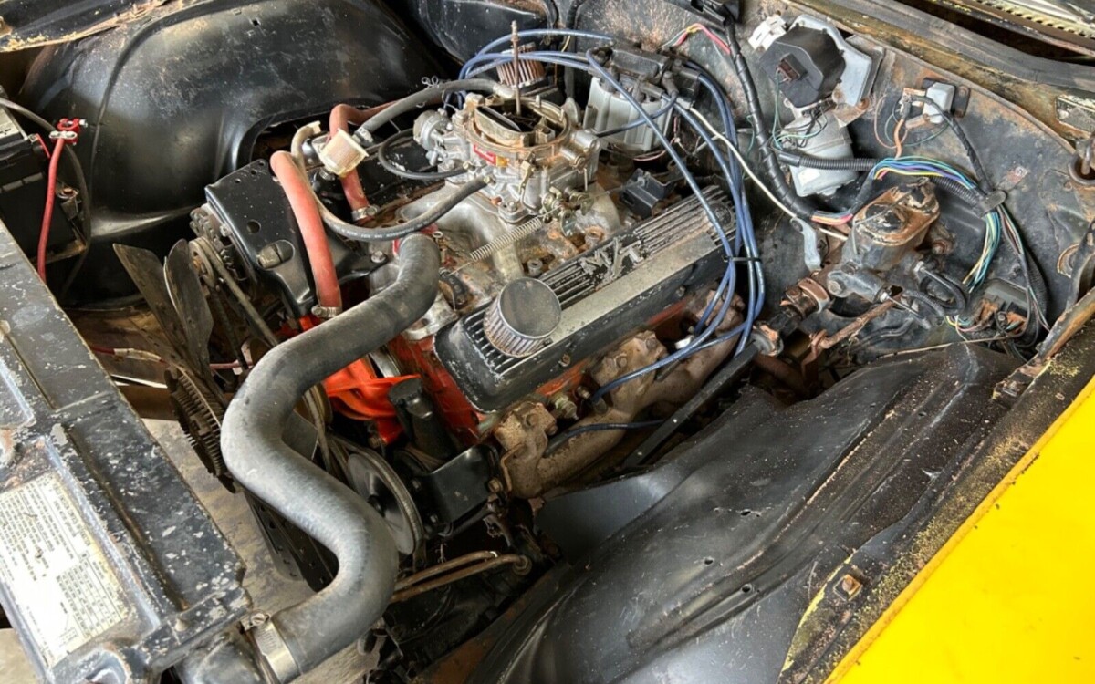 The 350 under the hood is believed to be the original motor, but it’s not stated if the small block began life as a 2-Barrel or 4. At some point, an aluminum intake was added with an Edelbrock 4-Barrel on top, but beyond this, we don’t get many other engine details other than it’s running good at the moment but could use a tune-up. The transmission is far from original, as it was automatic from the factory, but now there’s a manual that the seller thinks came from an S10 pickup. which he thinks should be replaced. I agree.