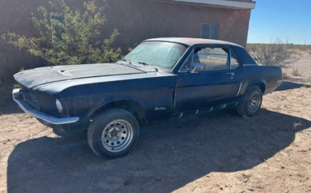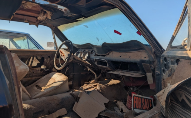 The body on this project car may be mostly okay since it’s spent a lot of time out in the New Mexico desert. The paint may be dark blue, and the interior cream colored. Mustang sales softened a bit to 317,000 units in ’68, but competition was coming at Ford from all angles, with the Chevy Camaro leading the charge.