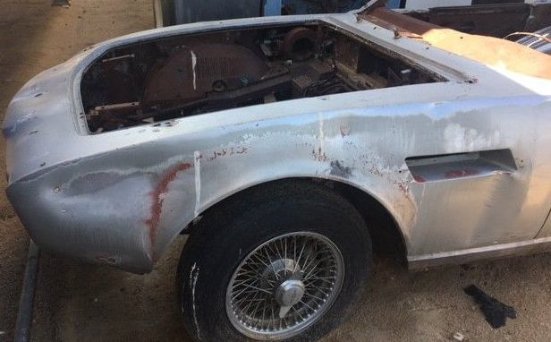 The aluminum body has survived surprisingly well despite years of being shuffled around. The seller notes due to these impromptu moves, the body has suffered dings and dents throughout. Still, there’s enough here that you can remember how handsome these fastback successors to the DB6 were. The wire wheels with knock-off hubs are still present along with the chrome rear bumper, both of which may be worth the cost of admission in and of themselves.