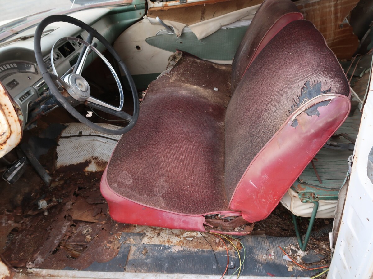 Besides offering a low-priced way to haul people and cargo, the 2-door Ranch Wagon of 1957-59 served as the basis for the Ranchero, a new “gentlemen’s pickup” that was introduced. The platform saw 60,486 of the Ranch Wagon and 21,705 of the Ranchero built in 1957 alone. We don’t know if this wagon was in running condition when it was “retired” in the 1970s, but the passage of time and help from Mother Nature have taken their toll.